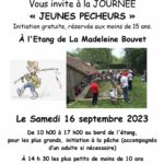 Rendez-vous le samedi 16 septembre 2023 pour une journée d’initiation gratuite à la pêche à destination des jeunes de moins de 15 ans organisée par le Comité des fêtes de la Madeleine Bouvet. A vos cannes à pêche !