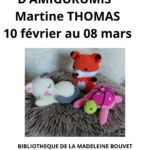 Dans le cadre de l’animation annuelle « Tout feu, tout flamme », la bibliothèque a le plaisir de vous inviter à une exposition/vente d’AMIGURUMIS de Martine THOMAS, personnages réalisés au crochet avec de la laine. Rendez-vous du 10 février au 08 mars 2023 à la bibliothèque. Martine Thomas vous propose une initiation le samedi 09 mars de…